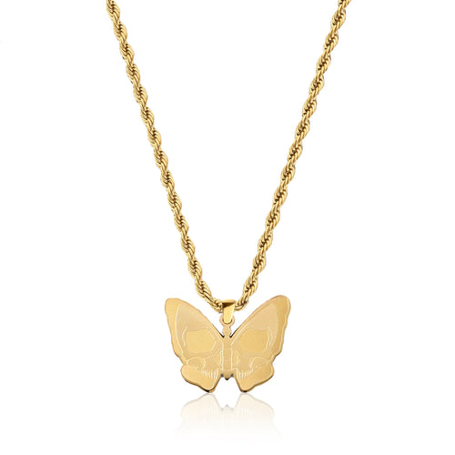 The Butterfly Effect Pendant boasts a completely unique design featuring an intricately carved skull within the delicate frame of a graceful butterfly. The concept behind its creation draws inspiration from the renowned theory that minor alterations in the present can lead to significant ramifications in the future. However, let's be honest, it's essentially the dopest butterfly you've ever seen that's guaranteed to earn you compliments.